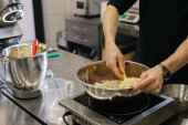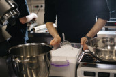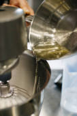Robię makarony. Srebrny mikser kuchenny ugniata ciasto na makarony.