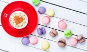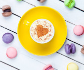 Zdjęcie "Cappuccino z symbol kształt serca i macaron " może być wykorzystywane do celów osobistych i komercyjnych zgodnie z warunkami zakupionej licencji Royalty-free. Obraz jest dostępny do pobrania w jakości wysokiej rozdzielczości do 5760x3840.