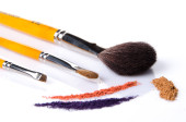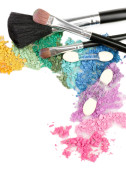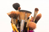 Kompozycja z pędzle do makijażu i podziale multicolor cień do oczu
