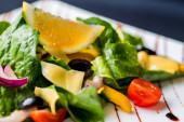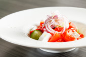 Grecka sałatka z serem i świeżymi warzywami w białej misce