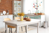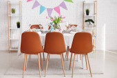 Zdjęcie "Wnętrze jadalni ze stołem służącym do obchodów Wielkanocy" może być wykorzystywane do celów osobistych i komercyjnych zgodnie z warunkami zakupionej licencji Royalty-free. Obraz jest dostępny do pobrania w jakości wysokiej rozdzielczości do 5760x3840.