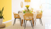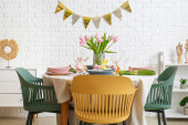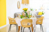 Wnętrze jadalni ze stołem służącym do obchodów Wielkanocy