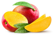 Zdjęcie "Organiczne mango odizolowane na białym tle. Spróbuj mango z liściem. ze ścieżką wycinania" może być wykorzystywane do celów osobistych i komercyjnych zgodnie z warunkami zakupionej licencji Royalty-free. Obraz jest dostępny do pobrania w jakości wysokiej rozdzielczości do 5760x3840.