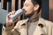 Zdjęcie "Szczęśliwy człowiek pijący z puszki na jasnoszarym tle. Miejsce na tekst" może być wykorzystywane do celów osobistych i komercyjnych zgodnie z warunkami zakupionej licencji Royalty-free. Obraz jest dostępny do pobrania w jakości wysokiej rozdzielczości do 5760x3840.