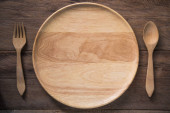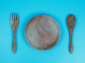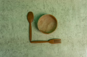 koncepcja przerywanego postu. Koncepcja dietetycznej żywności i utrata tłuszczu. widelec i łyżka drewniana