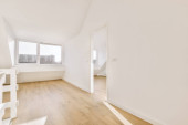 pusty pokój z białymi ścianami i żadne drzwi na drugiej ścianie na tym zdjęciu nie są robione od wewnątrz
