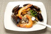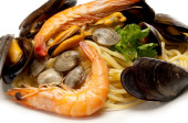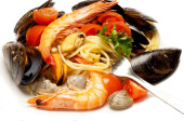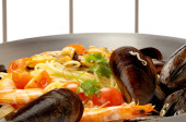 spaghetti z małż małży i krewetek