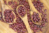 suszona czerwona fasola nerkowa na drewnie oliwnym
