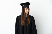 Zdjęcie "Graduate girl master degree in black graduation gown is holding cap in hands on white background. Attractive young woman graduated from college" może być wykorzystywane do celów osobistych i komercyjnych zgodnie z warunkami zakupionej licencji Royalty-free. Obraz jest dostępny do pobrania w jakości wysokiej rozdzielczości do 5760x3840.