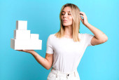 Zdjęcie "Młoda piękna kobieta uśmiechająca się szczęśliwie i marząca lub wątpiąca. puste białe pola koncepcja" może być wykorzystywane do celów osobistych i komercyjnych zgodnie z warunkami zakupionej licencji Royalty-free. Obraz jest dostępny do pobrania w jakości wysokiej rozdzielczości do 5760x3840.