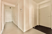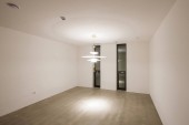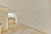 pusty salon z płytek podłogowych i białych ścian w pokoju jest bardzo czyste, ale nie ma światła