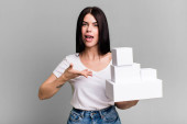 Zdjęcie "Młoda piękna kobieta wyglądająca na zmieszaną i zmieszaną. puste białe pola koncepcja" może być wykorzystywane do celów osobistych i komercyjnych zgodnie z warunkami zakupionej licencji Royalty-free. Obraz jest dostępny do pobrania w jakości wysokiej rozdzielczości do 5760x3840.