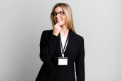 młoda piękna kobieta czuje się szczęśliwa i stoi przed wyzwaniem lub świętowanie. koncepcja działalności gospodarczej