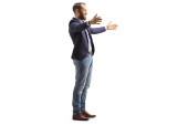 Zdjęcie "Podekscytowany gospodarz telewizji męskiej z mikrofonem skacze izolowane na białym tle" może być wykorzystywane do celów osobistych i komercyjnych zgodnie z warunkami zakupionej licencji Royalty-free. Obraz jest dostępny do pobrania w jakości wysokiej rozdzielczości do 5760x3840.
