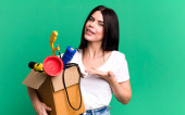 Zdjęcie "młoda piękna kobieta czuje się szczęśliwa i stoi przed wyzwaniem lub świętowanie. puste białe pudełka" może być wykorzystywane do celów osobistych i komercyjnych zgodnie z warunkami zakupionej licencji Royalty-free. Obraz jest dostępny do pobrania w jakości wysokiej rozdzielczości do 5760x3840.