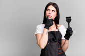 Zdjęcie "młoda piękna kobieta czuje się znudzona, sfrustrowana i senna po męczącym. koncepcja suszarki" może być wykorzystywane do celów osobistych i komercyjnych zgodnie z warunkami zakupionej licencji Royalty-free. Obraz jest dostępny do pobrania w jakości wysokiej rozdzielczości do 5760x3840.