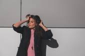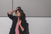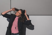 Piękna młoda brunetka pozowanie na ulicach miasta