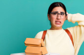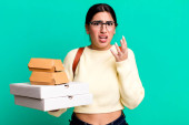 krzycząc z podniesionymi rękami. fast food dostawy lub zabrać