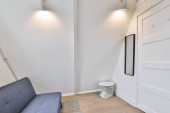 Zdjęcie "kuchnia z fioletowymi ścianami i białymi szafkami na tylnym siedzeniu, na suficie jest oprawa oświetleniowa" może być wykorzystywane do celów osobistych i komercyjnych zgodnie z warunkami zakupionej licencji Royalty-free. Obraz jest dostępny do pobrania w jakości wysokiej rozdzielczości do 5760x3840.
