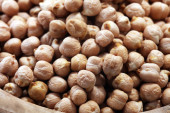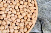 Porcja suszonego niegotowanego grochu z bliska, wegańskie jedzenie