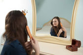 Zdjęcie "młoda kobieta przed lustrem" może być wykorzystywane do celów osobistych i komercyjnych zgodnie z warunkami zakupionej licencji Royalty-free. Obraz jest dostępny do pobrania w jakości wysokiej rozdzielczości do 5760x3840.