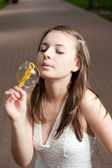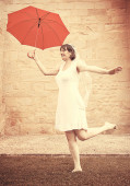 młoda dziewczyna z parasolem w parku