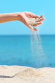 stylowe piękne ręce sypyat piasek morze lato na łonie natury
