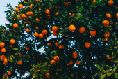 Zdjęcie "Orange tree with ripe juicy fruit among green foliage against blue sky background Growing fruit in a summer garden, orchard, plantation, agricultural farm. Production of citrus fruits in summertime. " może być wykorzystywane do celów osobistych i komercyjnych zgodnie z warunkami zakupionej licencji Royalty-free. Obraz jest dostępny do pobrania w jakości wysokiej rozdzielczości do 5760x3840.