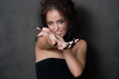 młoda kobieta Lampart sukienka kolory.