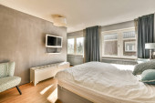 Zdjęcie "łóżko w sypialni z drewnianymi ścianami i przesuwanymi szklanymi drzwiami, które otwierają się na zewnątrz patio" może być wykorzystywane do celów osobistych i komercyjnych zgodnie z warunkami zakupionej licencji Royalty-free. Obraz jest dostępny do pobrania w jakości wysokiej rozdzielczości do 5760x3840.