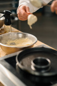 Profesjonalny szef kuchni przygotowuje naleśniki