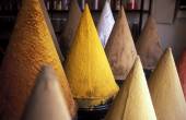Colorful spices and dyes found at souk market in Marrakesh, Morocco.