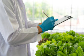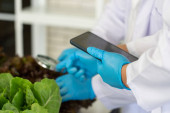 Zdjęcie "Przycięte ujęcie botanika badającego jakość, obserwującego organiczne warzywa ze szkłem powiększającym w szklarni przemysłowej." może być wykorzystywane do celów osobistych i komercyjnych zgodnie z warunkami zakupionej licencji Royalty-free. Obraz jest dostępny do pobrania w jakości wysokiej rozdzielczości do 5760x3840.