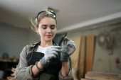Zdjęcie "Mały interes młodej kobiety. Piękna młoda pracownica w pracowni mebli" może być wykorzystywane do celów osobistych i komercyjnych zgodnie z warunkami zakupionej licencji Royalty-free. Obraz jest dostępny do pobrania w jakości wysokiej rozdzielczości do 5760x3840.