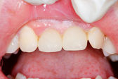 zbliżenie zdjęcie zęba siekacza, który ma wybuchnąć u 7-letniego dziecka