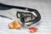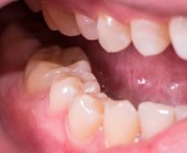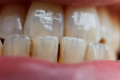 zbliżenie zdjęcie zęba siekacza, który ma wybuchnąć u 7-letniego dziecka