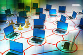 Zdjęcie "Podłączony laptop na niebieskim tle odblaskowe." może być wykorzystywane do celów osobistych i komercyjnych zgodnie z warunkami zakupionej licencji Royalty-free. Obraz jest dostępny do pobrania w jakości wysokiej rozdzielczości do 5760x3840.