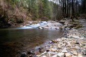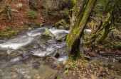 Zdjęcie "Górski potok płynie przez leśny krajobraz." może być wykorzystywane do celów osobistych i komercyjnych zgodnie z warunkami zakupionej licencji Royalty-free. Obraz jest dostępny do pobrania w jakości wysokiej rozdzielczości do 5760x3840.