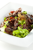 Świeża wołowina sałatka z sałaty, pomidory, jajka na twardo, musztarda sa