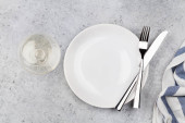 Zdjęcie "Stylowe ustawienie z sztućcami i liści eukaliptusa na jasnoszarym stole, płaska leżanka. Miejsce na tekst" może być wykorzystywane do celów osobistych i komercyjnych zgodnie z warunkami zakupionej licencji Royalty-free. Obraz jest dostępny do pobrania w jakości wysokiej rozdzielczości do 5760x3840.