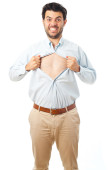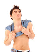 Człowiek za pomocą pod pachami poceniu dezodorant w sprayu