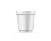 Biały plastikowy garnek z folią na jogurt, śmietankę, deser lub dżem. 200 ml szablon makiety opakowaniowej. Ilustracja 3D renderowania