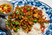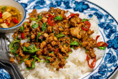 Zdjęcie "Stir fried Thai basil with minced pork and a fried egg on white plate" może być wykorzystywane do celów osobistych i komercyjnych zgodnie z warunkami zakupionej licencji Royalty-free. Obraz jest dostępny do pobrania w jakości wysokiej rozdzielczości do 5760x3840.