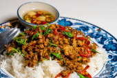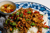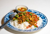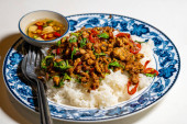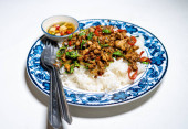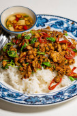 Zdjęcie "Stir fried Thai basil with minced pork and a fried egg on white plate" może być wykorzystywane do celów osobistych i komercyjnych zgodnie z warunkami zakupionej licencji Royalty-free. Obraz jest dostępny do pobrania w jakości wysokiej rozdzielczości do 5760x3840.