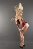 młoda kobieta w czarne majtki i biustonosz, buty.