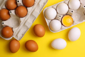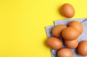 Zdjęcie "świeże jaja hodowlane na kolorowym tle. Wysokiej jakości zdjęcie" może być wykorzystywane do celów osobistych i komercyjnych zgodnie z warunkami zakupionej licencji Royalty-free. Obraz jest dostępny do pobrania w jakości wysokiej rozdzielczości do 5760x3840.