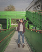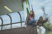 Piękna młoda brunetka pozowanie na ulicach miasta