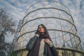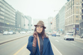Piękna młoda brunetka pozowanie na ulicach miasta