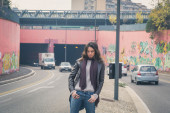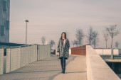 Piękna młoda brunetka pozowanie na ulicach miasta