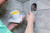 Zdjęcie "Facet robi wentylator w łazience. Proces przywracania. Śrubokręt w rękach." może być wykorzystywane do celów osobistych i komercyjnych zgodnie z warunkami zakupionej licencji Royalty-free. Obraz jest dostępny do pobrania w jakości wysokiej rozdzielczości do 5760x3840.